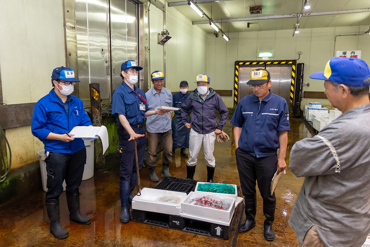 特種部門・養殖魚部門を中心に商品構成を行い販売しています。 特種では割烹・お寿司屋様向けに一般惣菜魚とは異なる生うに・刺身商材 寿司種活貝類全般嗜好品から定番品、海藻類全般・その他量販店向け加工品等を扱っています。 養殖では特種同様に割烹・寿司屋・量販店・他社市場様向けに刺身材を中心としハマチ・かんぱち・鯛・シマアジ・サーモン等の丸物・フィレー・ロイン・スライス等の扱いと一部加工品等の取り扱い販売をしています。