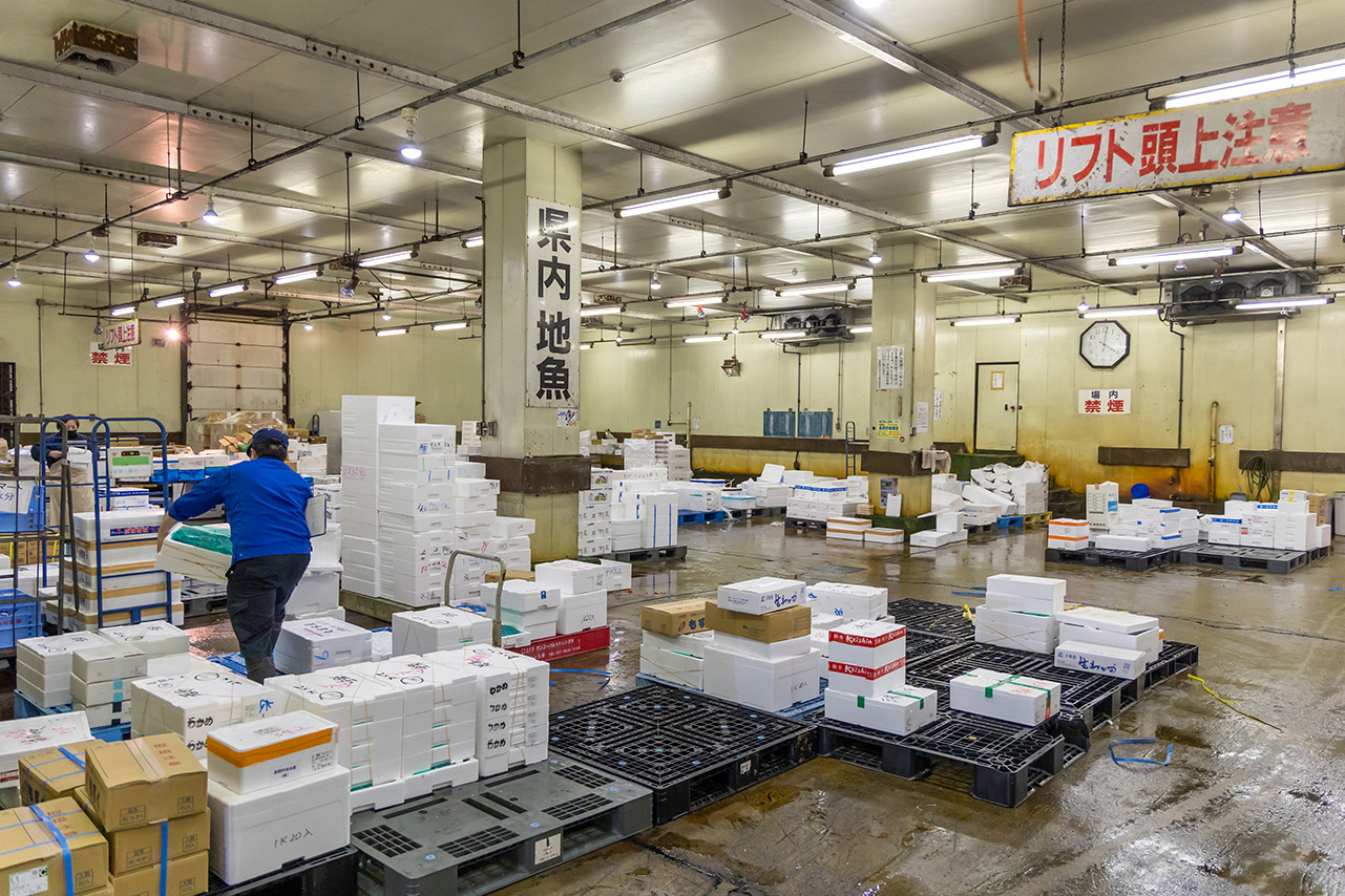 長岡中央水産では広大な市場の室内を温度管理して冷蔵庫化することにより、産地からの高鮮度を維持する為の物流システムを実現しています。
