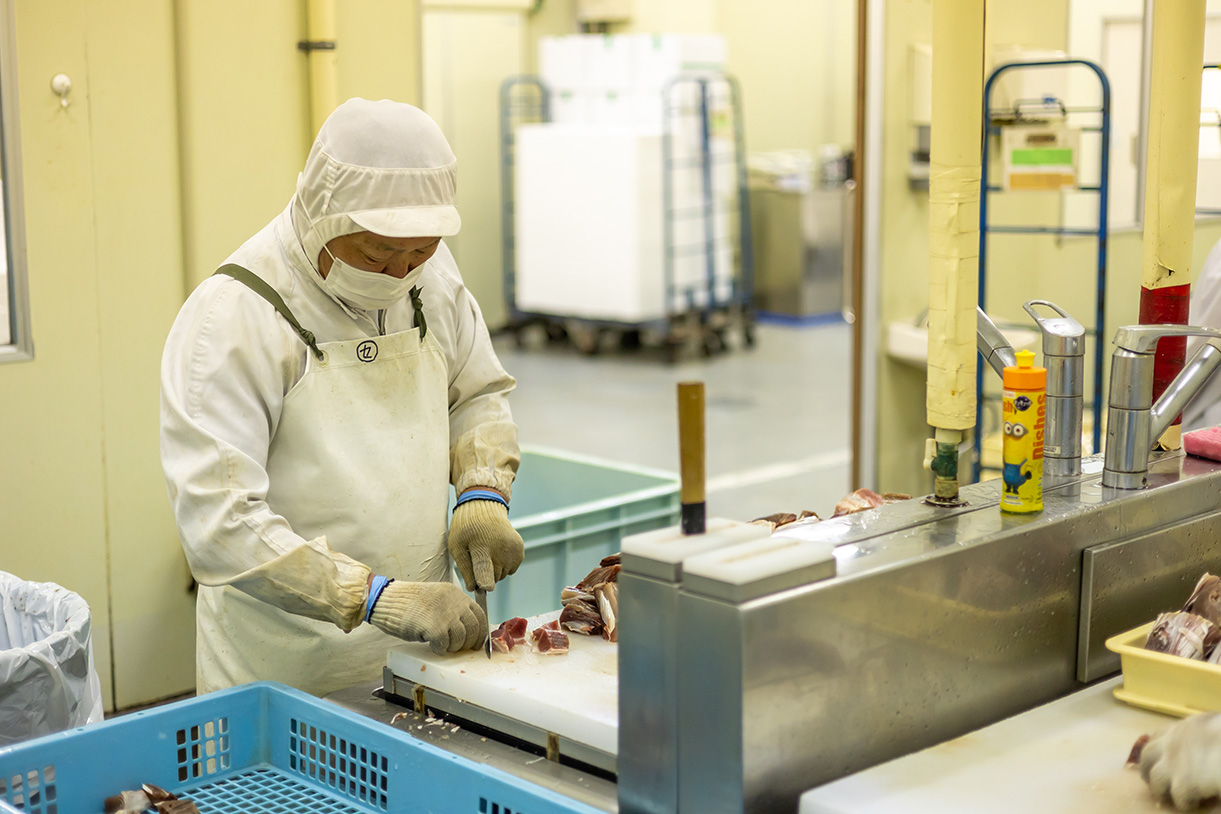 • 最新の冷凍・冷蔵機能を備えた工場設備で衛生管理を徹底しています。保管から加工までを集中管理しています。